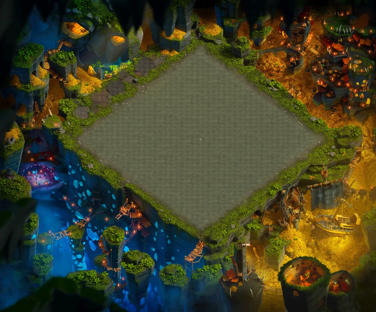 🕳️ Goblin Caves یا “غارهای گابلین” یه منظره تاریک و رمزآلود برای دهکده اصلیه که حالوهوای مخفیگاههای زیرزمینی گابلینها رو به دهکدهات میاره.